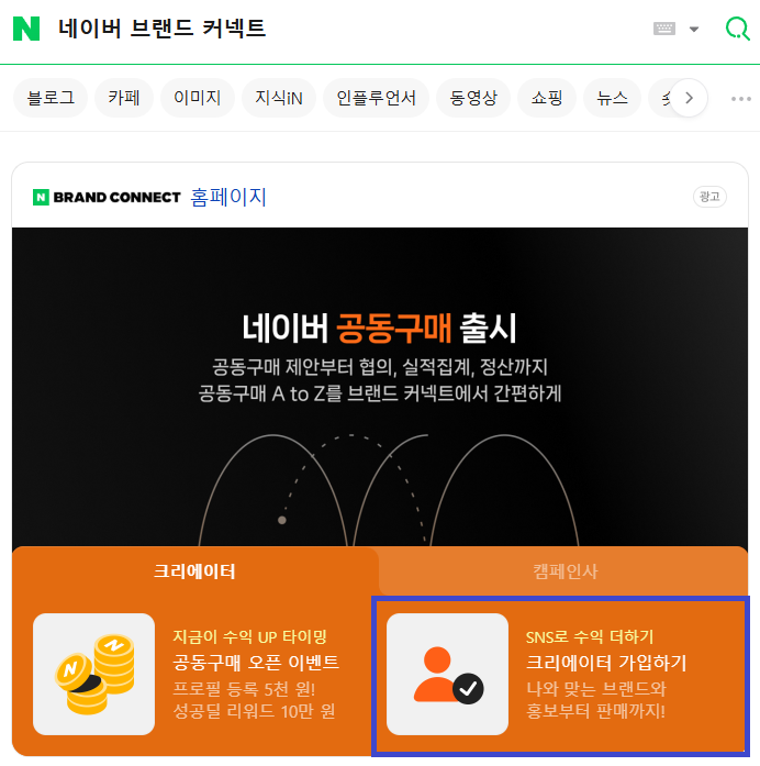 유튜브를 보고 쿠팡 파트너스처럼, 네이버에도 브랜드 커넥트가 있다는 것을 알게 되었다.